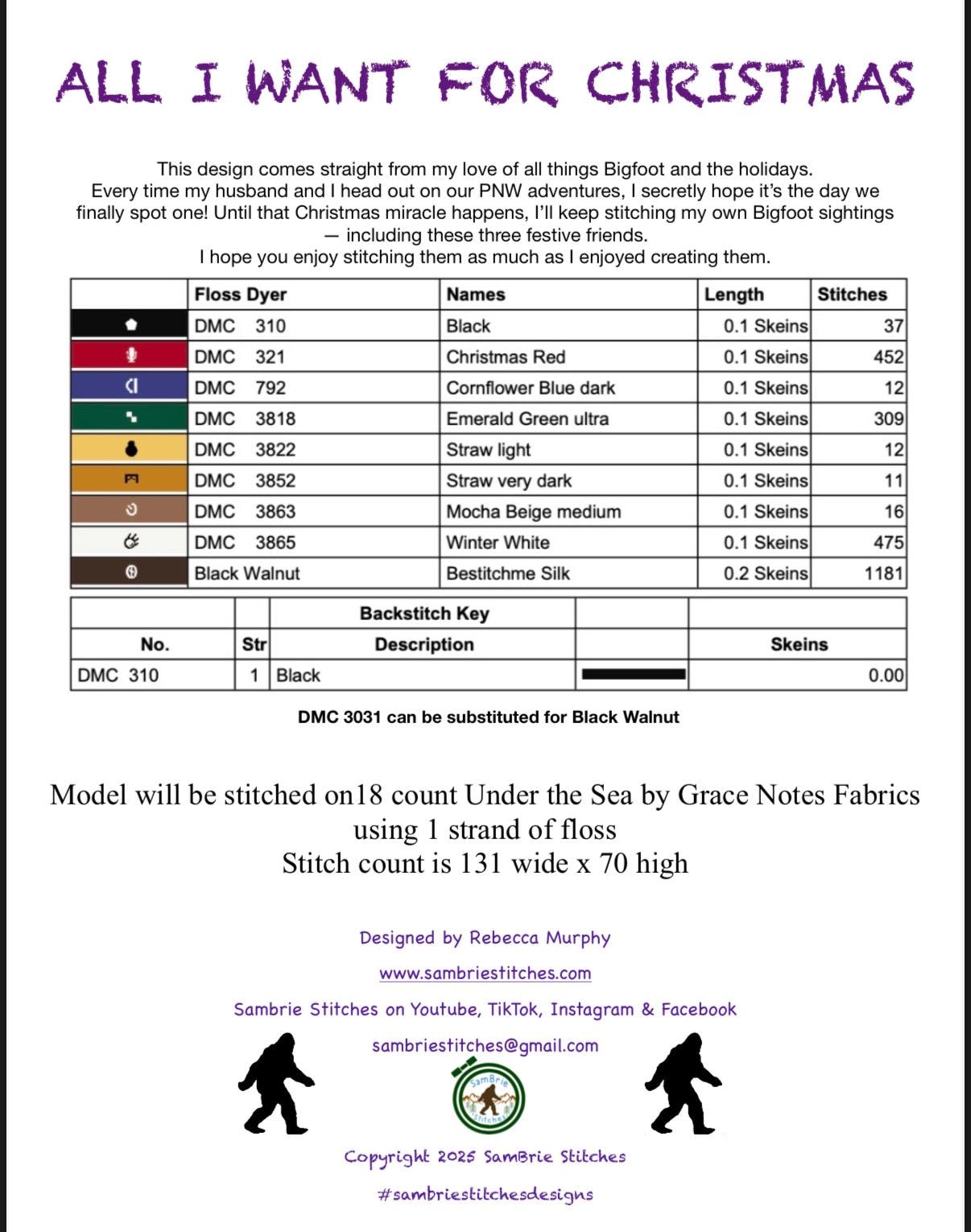Bring a little myth, magic, and holiday cheer to your next stitching session with this unique Bigfoot cross stitch design—I hope you enjoy stitching it as much as I loved creating it!