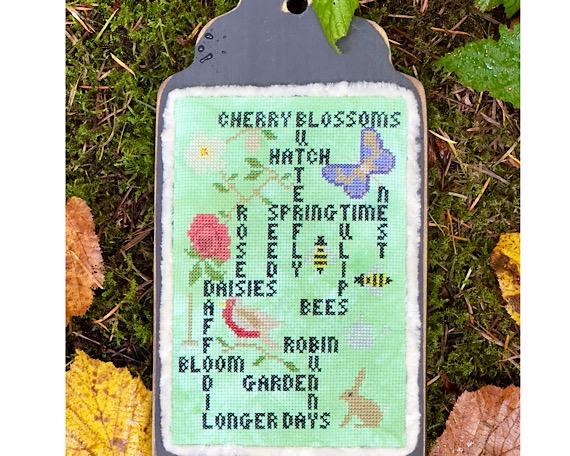 This design is perfect for stitchers who enjoy seasonal décor, word samplers, and bright spring stitching projects. The finished piece makes a lovely addition to a spring display, tiered tray décor, craft room, or seasonal gallery wall.