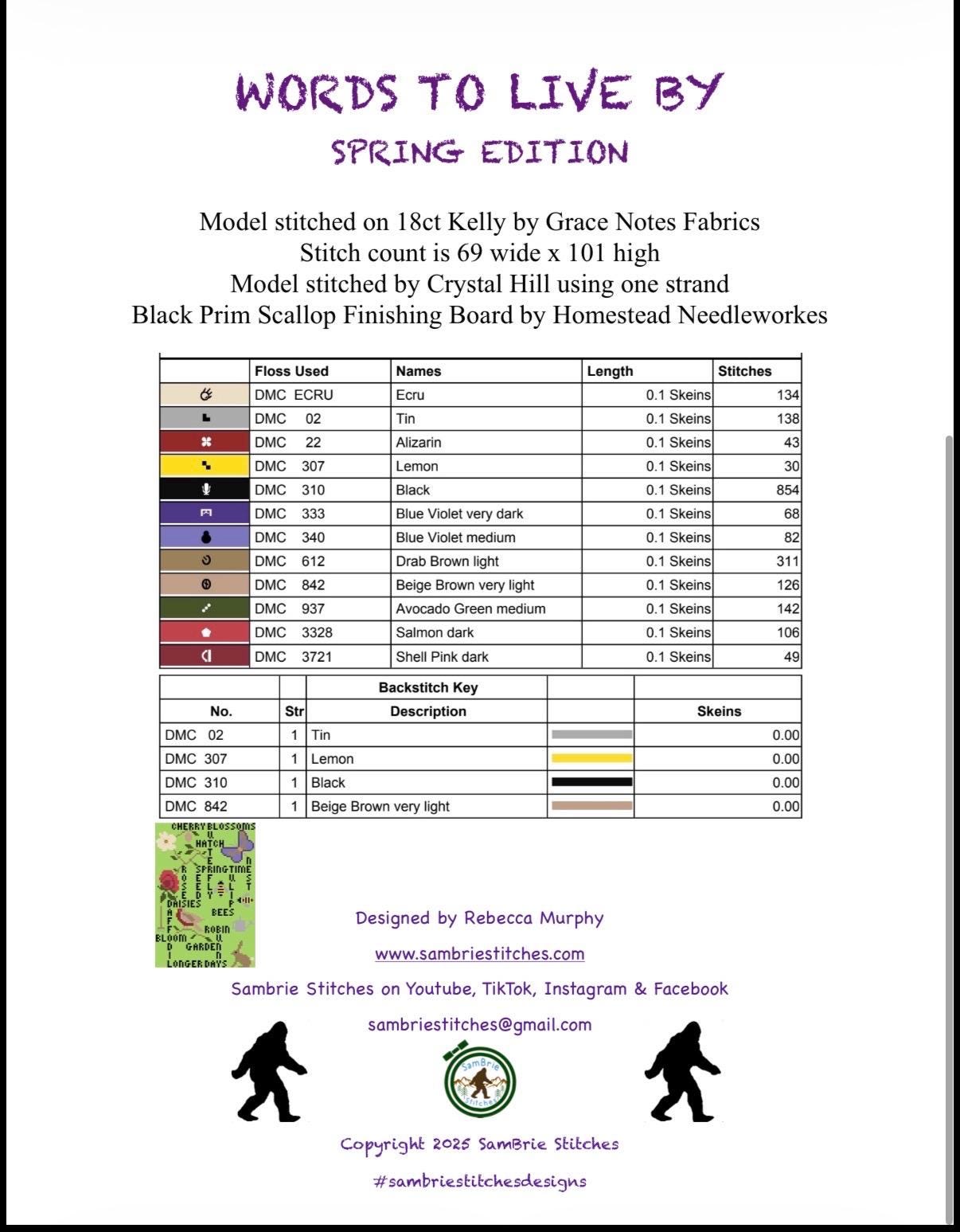 Words to Live By – Spring Edition is a cheerful seasonal cross stitch design celebrating the beauty, renewal, and inspiration of spring. This word-style sampler features uplifting seasonal words and motifs that capture everything we love about the season — blooming flowers, longer days, buzzing bees, and fresh beginnings.