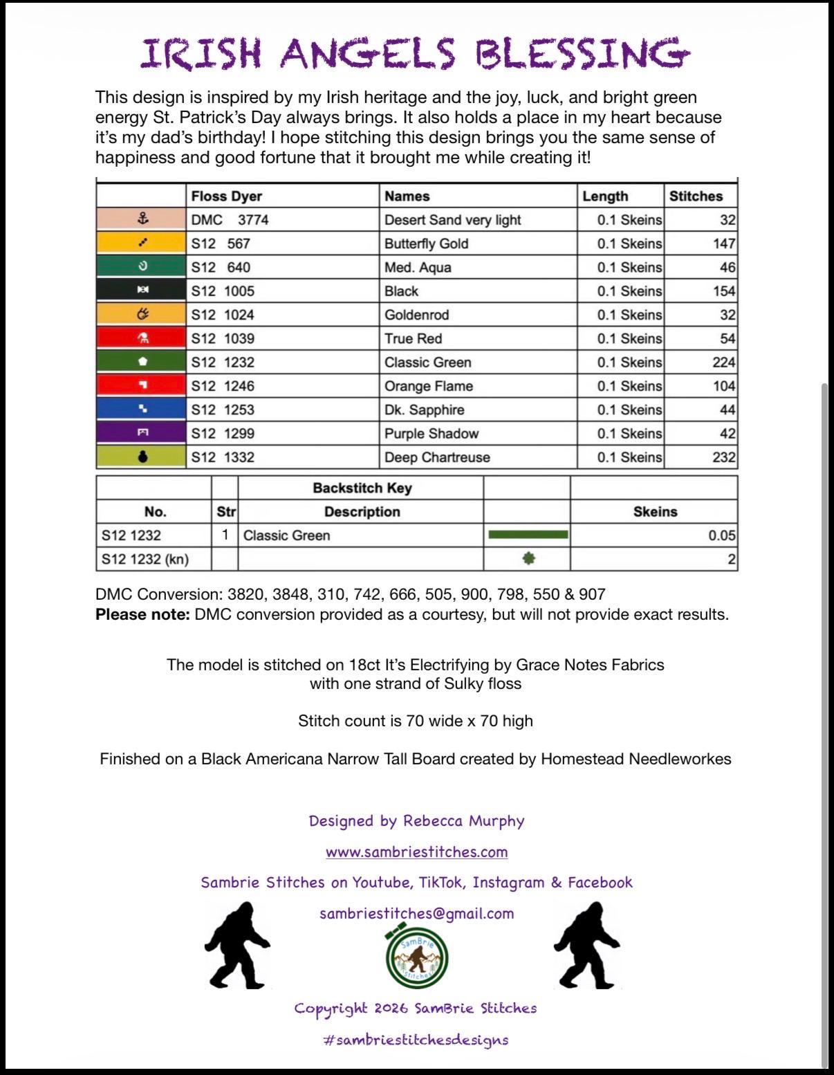 Irish Angels Blessing is a cheerful cross stitch design inspired by my Irish heritage and the joy, luck, and bright green energy of St. Patrick’s Day. This meaningful design celebrates the spirit of Ireland and the heartfelt blessings often shared among family and friends.