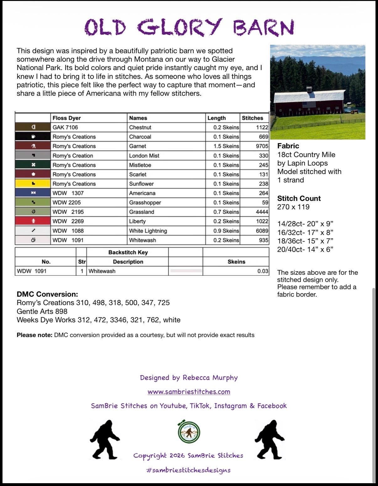 Whether you stitch it for Fourth of July décor, farmhouse decorating, or simply your love of country life, Old Glory Barn will be a stunning addition to your stitching collection.